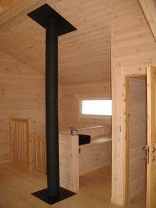神奈川県での薪ストーブ設置工事 ログハウスでの本体設置です。