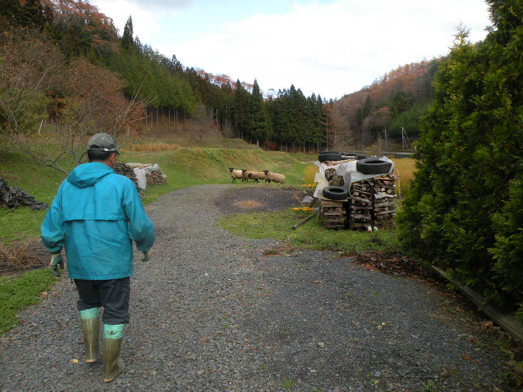 組合長が飼っている羊が屋敷回りを散策中でした。