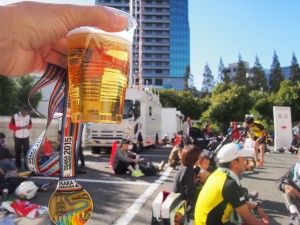 その後は、完走メダルと一緒にご褒美のBEER・・・・写真パチリ
