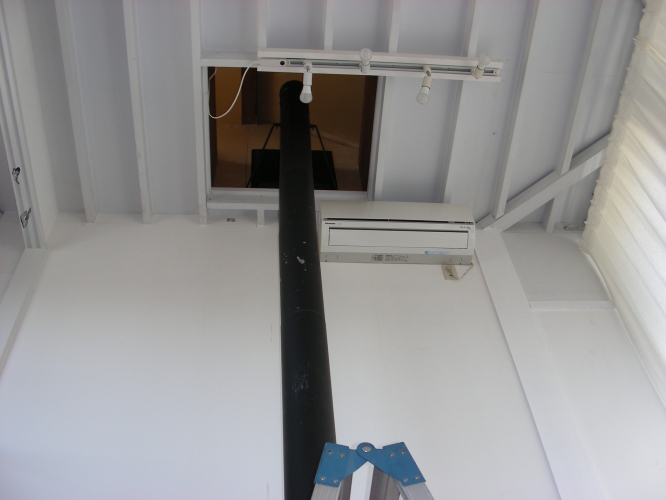 既存住宅のシングル煙突を断熱材入り二重煙突に交換する作業です。