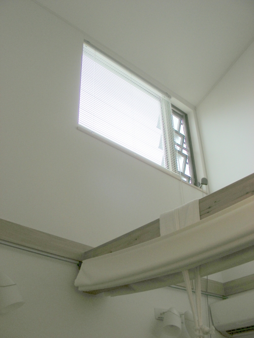 片流れ屋根の棟側に煙突が出るので通常の2連梯子では届きませ~ん