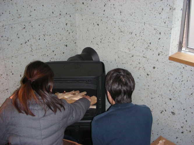 煙突は壁を抜いているので、室内はスッキリ 煙突