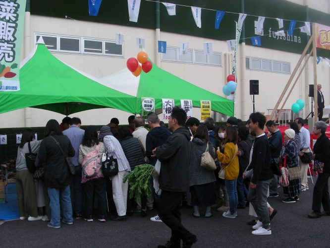開場と同時に人気の野菜の即売会には人だかり