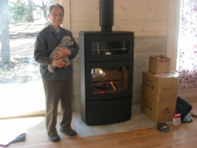 アメリカで暖炉を使用していたオーナーのお父様 薪ストーブの暖かさに感心されてました。