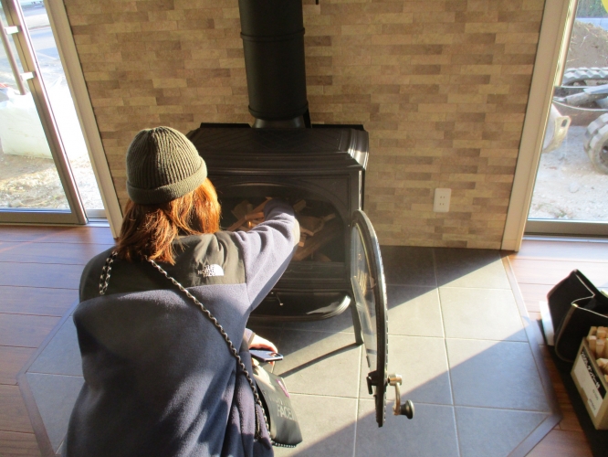 待ちに待った着火は奥様と親戚の方で・・・ (ご主人は仕事の都合で後から)