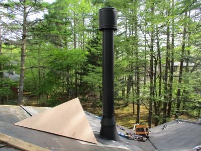 長野県での薪ストーブ設置工事 Ⅰ期工事(屋根上部分)です。