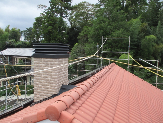 千葉県での薪ストーブ設置工事 Ⅰ期工事(屋根上部分)です。