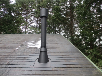 外では屋根屋がフラッシング周りの仕上げ作業 屋根屋さん