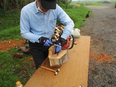 ツツジ 天候にも恵まれて絶好の薪割り日和