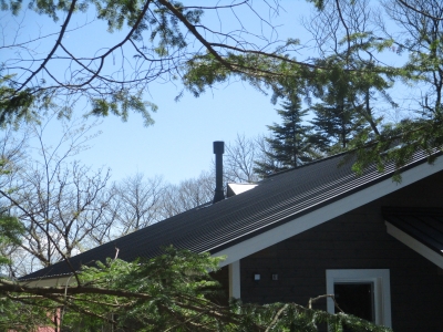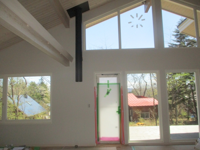 化粧板を取り付け煙突を下げていきます。 室内