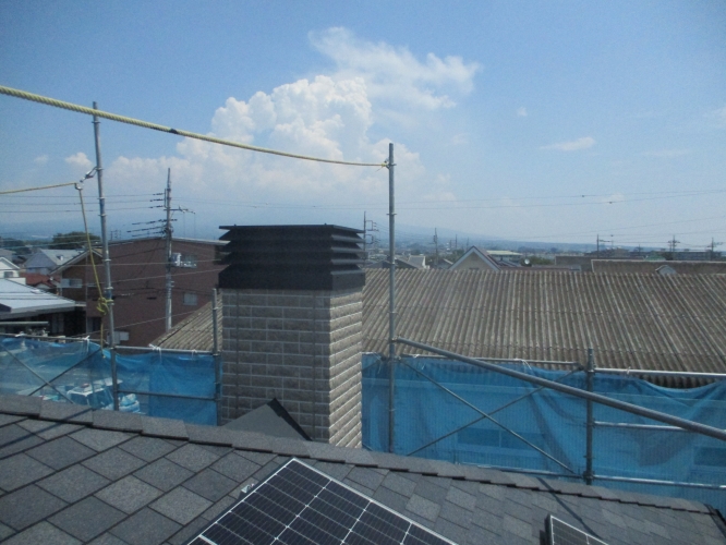 群馬県での薪ストーブ設置工事 Ⅰ期工事(屋根上部分)です。