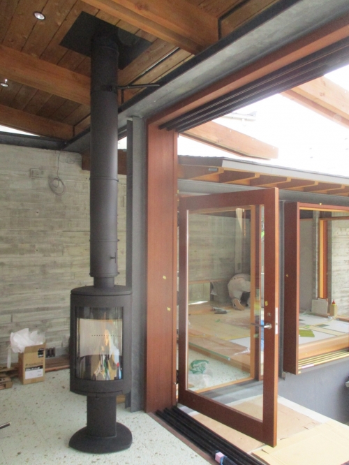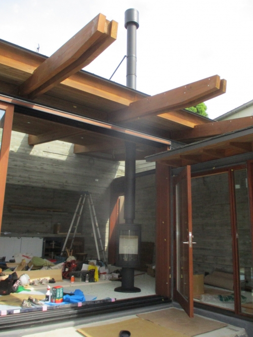 東京都23区内での薪ストーブ設置工事 本体設置です。