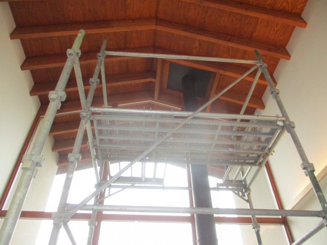 吹抜け部分には室内足場が用意されています。 室内足場