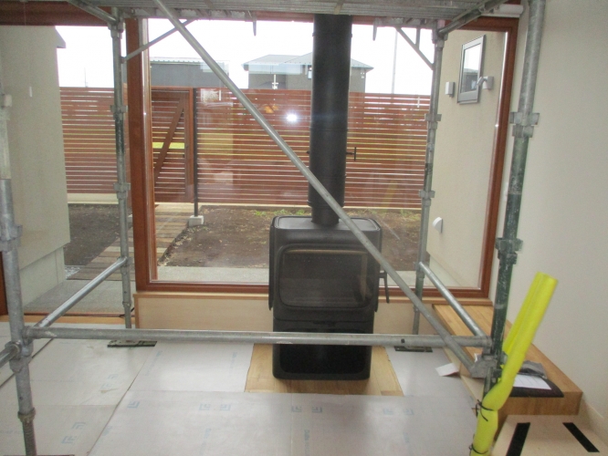 埼玉県での薪ストーブ設置工事 本体設置です。