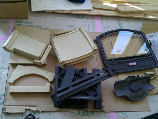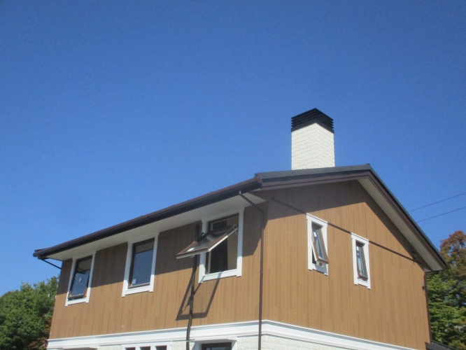 まずは、2階の部屋の化粧板と煙突を取りつけます。 2階