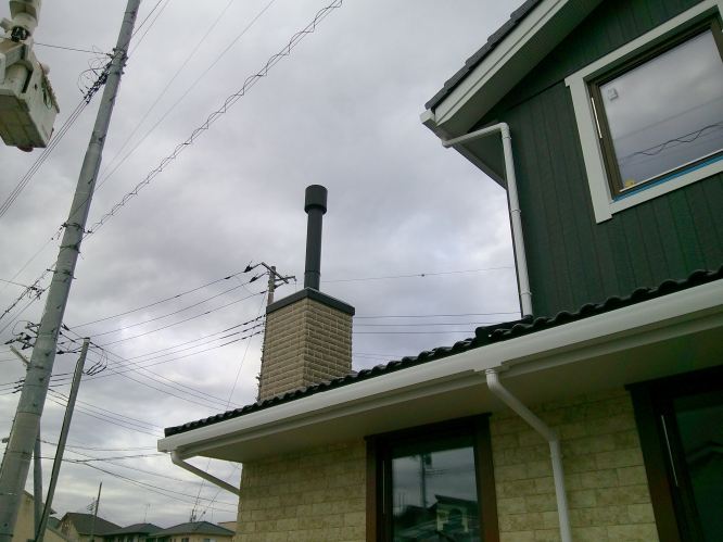 平屋部分に設置ですので、煙突囲いで高さを確保 チムニーカバー