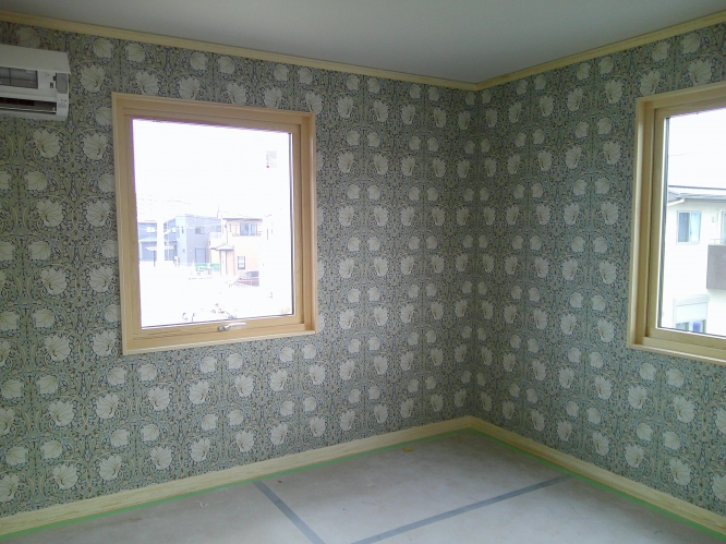 2階の部屋のクロスは可愛い花柄でした。 クロス