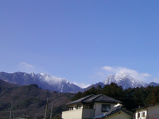 高速を降りてすぐのコンビニの駐車場からは甲斐駒ヶ岳と鳳凰三山がくっきりと見えました。