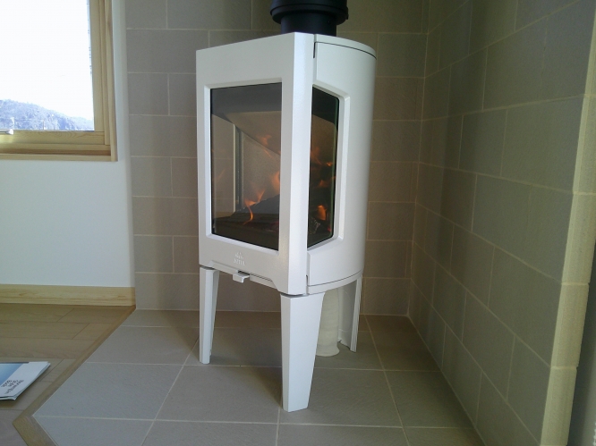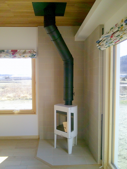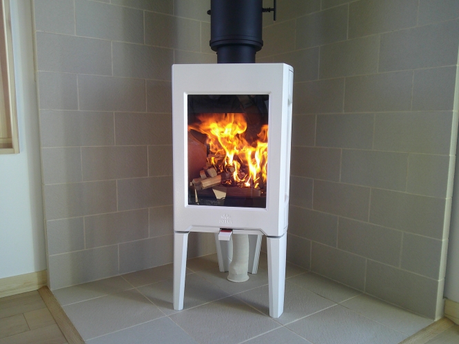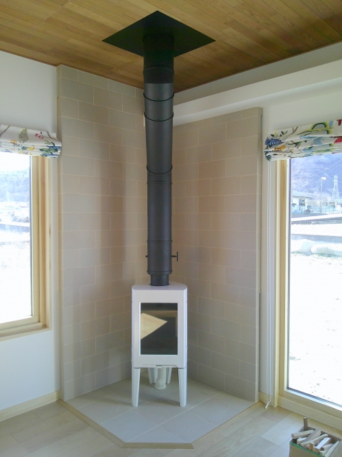 薪ストーブ本体は 先日設置 の終わったばかりの ヨツール F163 ホワイトエナメル(受注発注品)