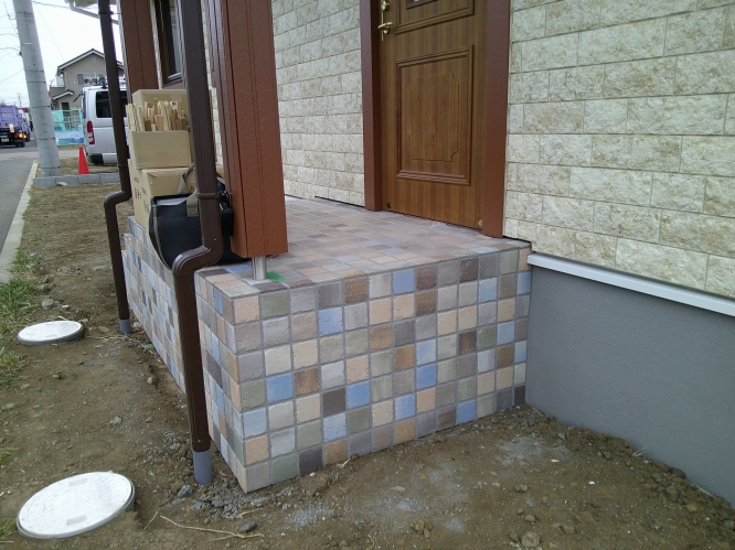 カラフルタイル 玄関のカラフルなタイルがお出迎え。