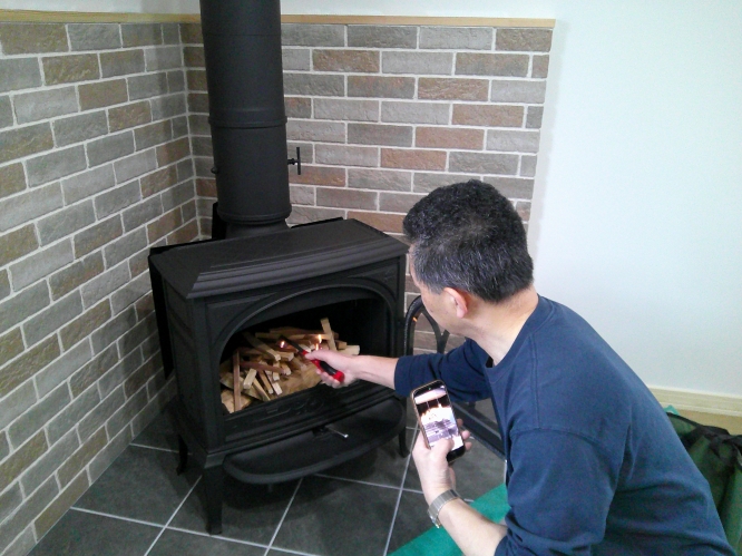 ご主人が携帯で動画を取りながら着火です。 着火