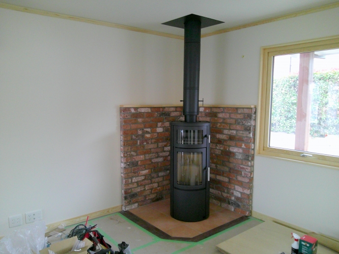 神奈川県での薪ストーブ設置工事 本体設置です。