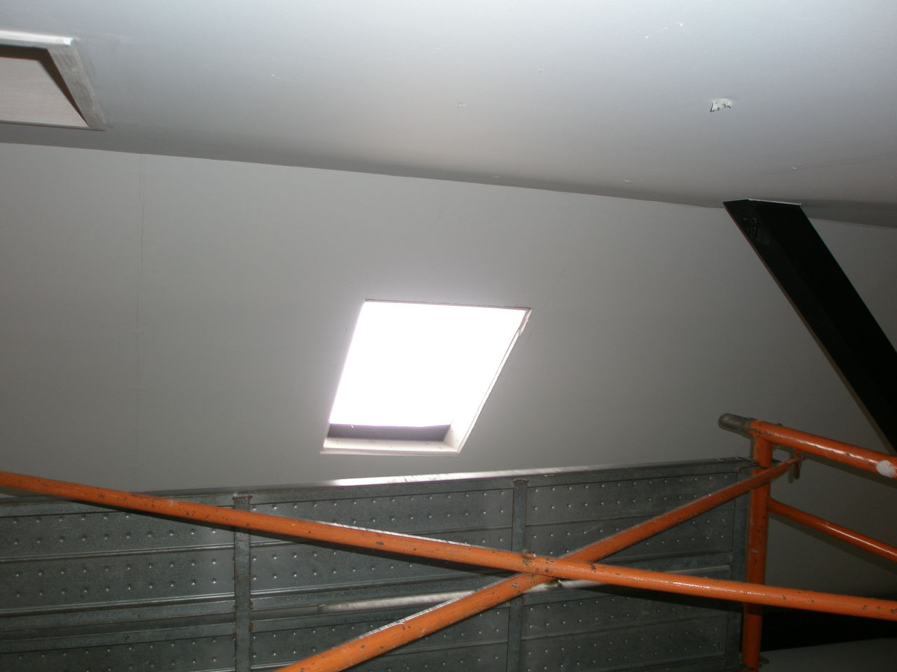 室内も吹き抜けの為、足場を設置後、天井の開口です。