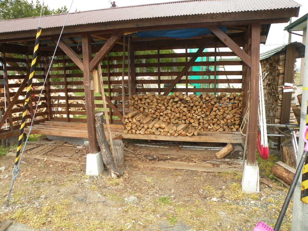 外積み乾燥1年経過の薪はそろそろ薪小屋へ積み変えです。