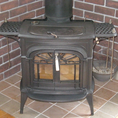 東京都での薪ストーブ設置工事 本体設置です。 薪ストーブ本体は、バーモントキャスティングス イ