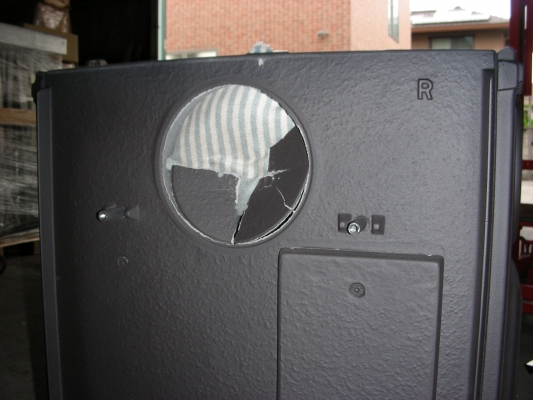 神奈川県での薪ストーブ設置工事 本体設置です。 倉庫で